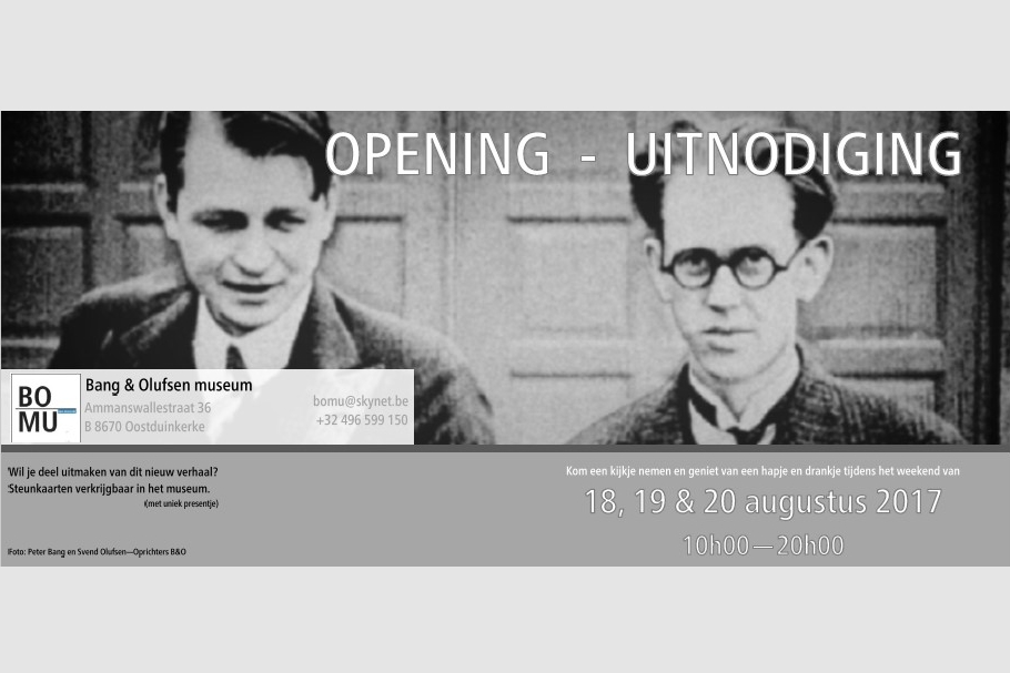 18 augustus 2017. Een langverwachte droom komt uit voor Paul Andries. De verzameling had reeds zo'n proporties aangenomen, dat een aanbouw voor het uitstallen ervoor nodig was. Met het beginnen van het bouwen, was er ook begonnen aan het bouwen aan de droom een museum te starten. Een museum over B&O, het Deense merk, gekend voor radio, tv, ... Geniet hier van een aantal foto's van de openingsdagen. Heeft u de opening gemist? Geen paniek! U kunt steeds langskomen, klik hieronder voor meer informatie.